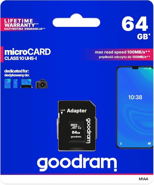 Goodram M1AA-0640R12 Class 10 UHS-I U1 64 GB Micro SD Kart 100MB 100MB 64GB