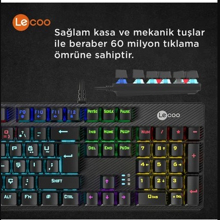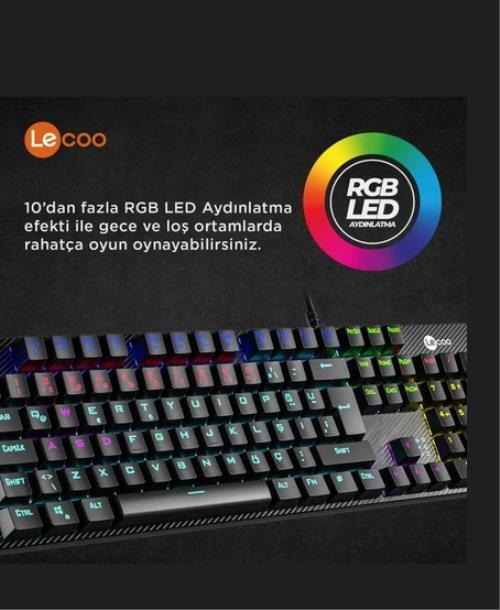 Lenovo Lecoo KG1101 Makro Tuşlu USB Kablolu RGB LED Aydınlatmalı Blue Switch Gaming Mekanik Türkçe Q Klavye Siyah Özellikleri